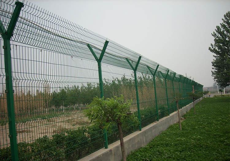Y型柱护栏网也叫Y字柱护栏网,它是常用于机场、监狱的常见护栏网产品之一,它的防护能力较强在传统框架护栏网的基础上,将原有直柱或是带有斜弯的一般立柱的上端进行重新设计成为一个V字形上端,并在其V字形支架上设置刺铁丝或网片支撑固定一条刺丝滚笼结构,以加强隔离护栏网设施的防护能力与震慑效果,其立柱从侧面看整体成一个大写的字母“Y”,所以常形像的称它为Y型柱护栏网或Y字柱护栏网。